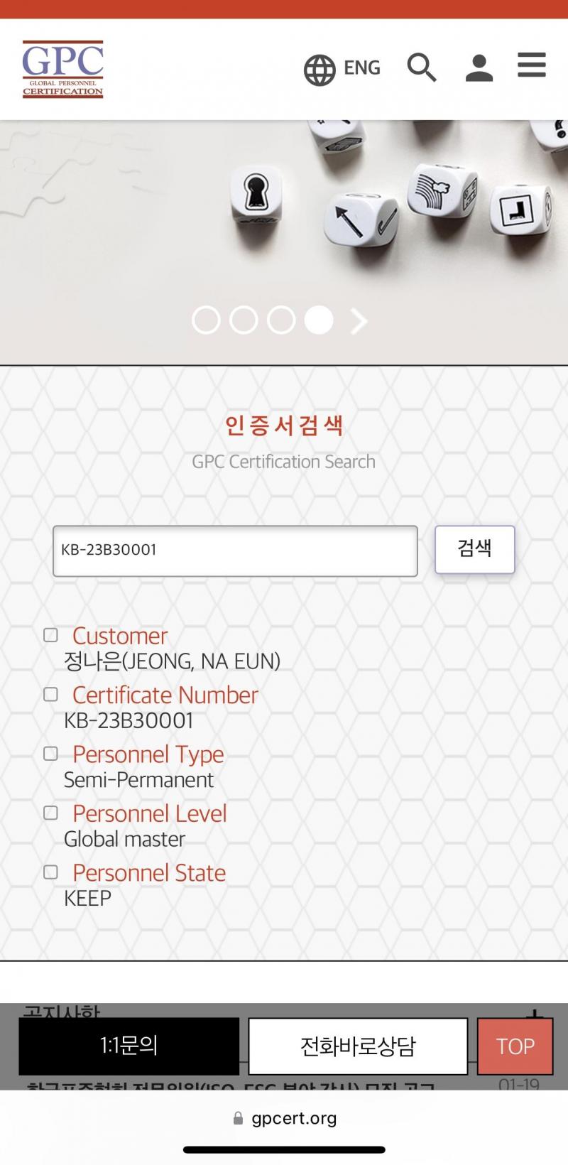 在 認證院網站上確認查詢 的話,